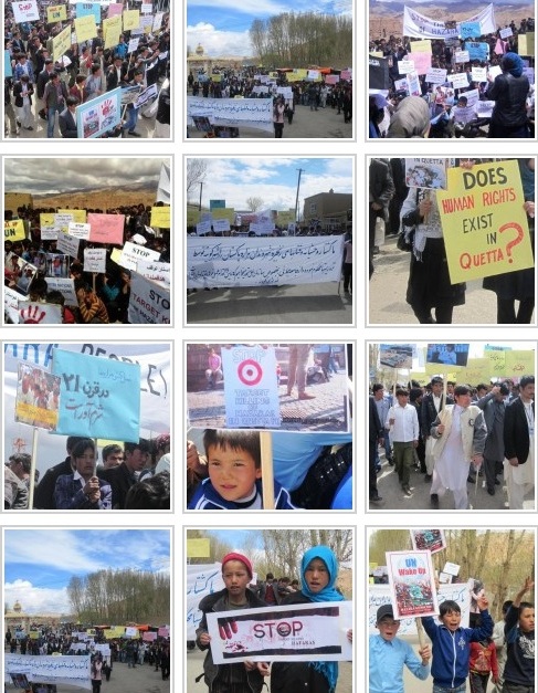 مردم هزاره در کشورهای مختلف تظاهرات جهانی خود را از روز 20 ماه اپریل سال 2012 در اعتراض به نسل کشی، کوچ اجباری و تبعیض آغاز کرده اند. تاکنون در بیش از 13 شهر مهم از جمله کویته (بصورت متواتر)، لاهور، کراچی و اسلام آباد، پاکستان؛ بروکسل بلژیک؛ بامیان و نیلی، افغانستان؛ جاکارتا، اندونزی؛ استکهلم، مالمو و هسلهولم، سویدن؛ هامبورگ آلمان و شهر وین اتریش این تظاهرات برگزار شده است و انتظار می رود این تظاهرات جهانی تا پایان ماه می در بیش از 20 شهر دیگر در کشورهای مختلف جهان از جمله روم، نیویورک، تورنتو، کابل، سیدنی، ملبورن، آدلاید، کانبرا، دن هاگ، استانبول، آنکارا، اسلو، تروندهایم، لندن، هلسینکی و کپنهاگ برگزار شود. فعالان حقوق بشر و برخی از مقامات از جمله وکلای پارلمان کشورهای مختلف، در تظاهرات جهانی هزاره ها شرکت می کنند. همچنین در صورت عدم توقف جنایات علیه مردم هزاره، تظاهرات جهانی گسترده تر از پیش و بصورت متواتر در شهرها و کشورهای مختلف دنبال خواهد شد.