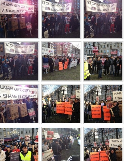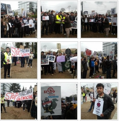 گروهی از هزارههای ساکن بریتانیا امروز دوشنبه ۳۰ آوریل (۱۱ اردیبهشت) در مقابل سفارت پاکستان در لندن دست به تظاهرات زدند.