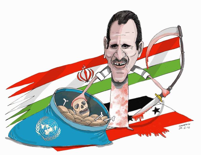 مسبب قتل عام ا نسا ن ها د ر سوریه ، حکومات روسیه ، چین ، ا یرا ن و حزب الله لبنا ن هستند . ا گرد خا لت ا ین مملکت ها نمیبود ، بشا ر ا سد مرتکب ا ین همه قتل عا م و