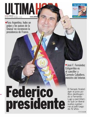 کلمات کلیدی: پاراگوئه آبیایالا آمریکای لاتین کودتا فرناندو لوگو فردریکو فرانکو هاریکو کارتِس