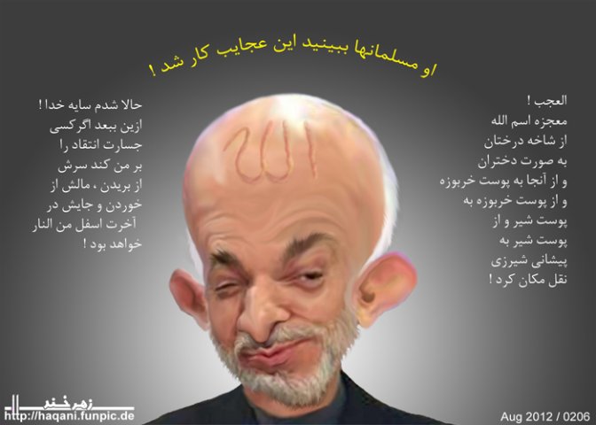 بودند کسانیکه کرزی را به خاطر داشتن روابط دوستانه اش با غرب و سپری کردن مدت در امریکا گنهکار می پنداشتند ولی امروز همه به چشمان گنهگارمان دیدیم که خداوند ایشان را لایق قدر و منزلت بزرگ دانسته و معجزه اسم الله را در پیشانی مبارک ایشان هویدا کردند.