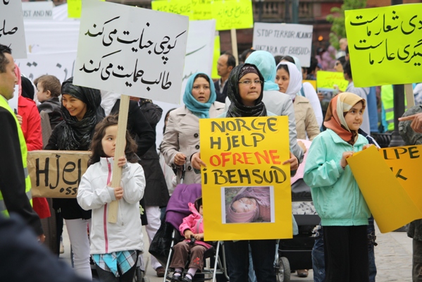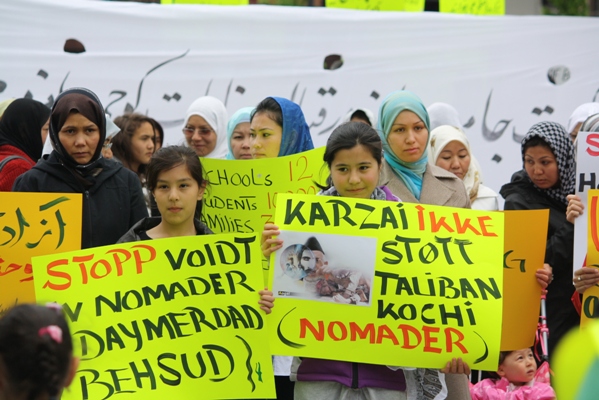 اعتراض صدها افغانستانی مقیم نروژ به حمله ی مسلحانه ی کوچی با بیرق آدمکشان طالب