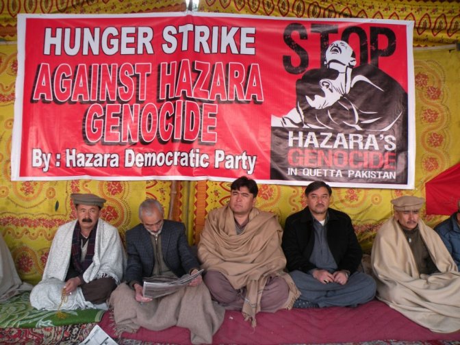 کابل پرس?: پس از حمله ی خونین پنجشنبه شب بر هزاره ها در شهر کویته که 118 کشته و نزدیک به 200 زخمی بر جای گذاشت، حزب دموکراتیک مردم هزاره در پاکستان از مردم هزاره در این کشور و سراسر جهان دعوت به راهپیمایی و اعتصاب کرد. از روز جمعه نیز رهبری حزب دموکراتیک مردم هزاره عبدالخالق هزاره و سایر اعضای ارشد این حزب در اعتصاب غذا بسر می برند.