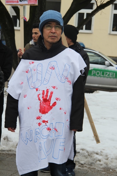 تظاهرات کنندگان در طول مسافت راه که توسط نیروهای امنیتی وپلیس محافظت میشد با سر دادن شعار های مختلف به زبانهای آلمانی وانگلیسی چون: کشتار های هدفمندانه هزاره هارا در پاکستان وافغانستان متوقف کنید وکشتار های سیستیماتیک هزاره کویته پاکستان را متوقف کنید ،وخواندن چندین بیانیه ومقاله در ارتباط با حوادث چند سال اخیر کویته پاکستان سرانجام ساعت 11,30 به ساختمان حکومتی آیالات بایرن آلمان رسیدند. ودر آنجا خواست های شان را با قرائت بیانیه،مقاله،سخنرانی وسردادن شعار ادامه دادند تا اینکه بعد از مدتی کوتاهی نماینده رسمی رئیس وزرای حکومت آیالتی بایرن آقای دکتر فیشر در جمع تظاهرات کنندگان حاضر شد وبادر دست گرفتن میکرفون گفت با عرض معذورت که رئیس وزرا با خاطر شرکت در جلسه استعفای رهبر کاتولیک جهان بیندکت 16 در واتیکان ایتالیا رفته وتشریف ندارد تا شخصا در جمع شما حاضر میشد وضمن ابراز تائسف نسبت به حوادث کویته پاکستان قول داد که خواسته های ما را که در یک نامه سرگشاده عنوان رئیس وزرائ بایرن آقای هورست زیهوفه وصدر اعظم آلمان خانم آنگیلا مرکل ووزیر خارجه آقای گیدو ویستولی بود عملی نمایند وراجع به محتوای آن که عبارت از جلوی گیری از کشتار سیستیماتیک مردم هزاره در کویته پاکستان وافغانستان وفشار آوردن به حکومت پاکستان تا علیه گروه های تروریستی اقدام جدی کند واقلیت های مردمی را بیشتر ازین قربانی منافع سیاسی خود نکند تحقیق وبررسی نمایند وبعد از مذاکره نماینده های تظاهرات کننده ها با آقای دکتر فیشر وتسلیم نامه ها به ایشان ساعت 12 ظهر تظاهرات خاتمه یافت ومردم هم هرکدام بطرف خانه هایشان متفرق شدند.