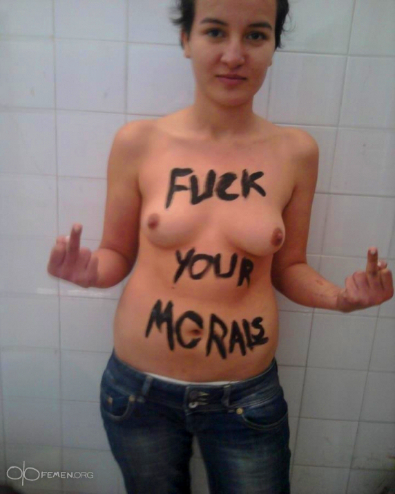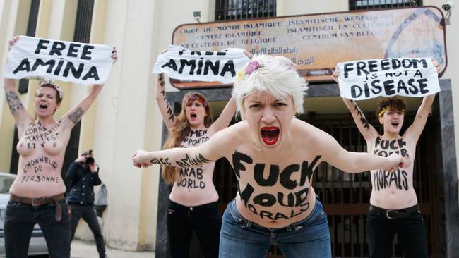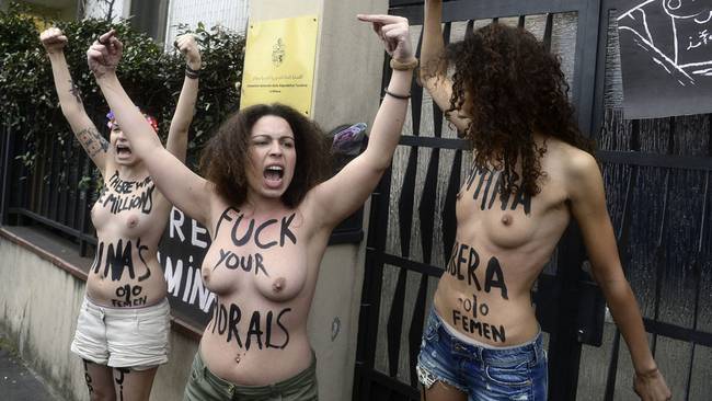 استبداد و زیر پا گذاشتن حقوق انسانی زن ها ، یک تعداد زنها را مجبور به برهنه کردن اندامهایشان به رسم اعتراض نموده است. البته به یقین کامل من با این کار شان موافق نمیباشم اما این زنها به این طریق به ان امام های مفت خوار و مفتی های کثیف و مسلمانان افراطی پیام میدهند که قانون های تو نمیتواند جلو مرا بگیرد. وجود از من و تو برای من قانون میسازی؟ اگر ان مسلمان منحوس افراطی نمیبود ، اینها بدن های خود را امروز به رسم اعترض چرا برهنه میکردند؟