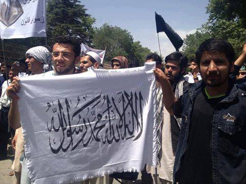 Kabul, Wednesday, May 22, 2013: A group of Mullah Omar’s supporters and students of faculty of Islamic studies of Kabul university have demonstrated against women rights and approval of law on the Elimination of Violence Against Women (EVAW). Demonstrators were carrying Taliban flag chanting anti-democracy and women rights slogans. This demonstration was held in Kabul while rights organizations such as Hazara Women International have asked authorities to properly insure the safety and the rights of women in Afghanistan.
