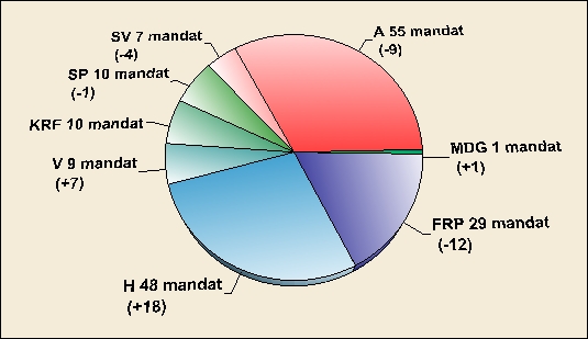 حزب کارگر ناروی که در دور قبل توانسته بود 68 کرسی را در اختیار داشته باشد، با از دست دادن 13 کرسی، 55 کرسی را در اختیار گرفته است.