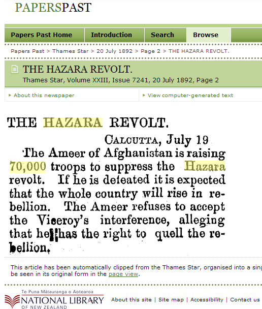 مبارزه هزاره ها علیه اشغالگران و متجاوزان افغان