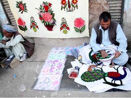 يو سړی د کابل به کوتی سنګی سيمه کی ګلدوزی کوی ترڅو خپل ژوند په مخ بوزی