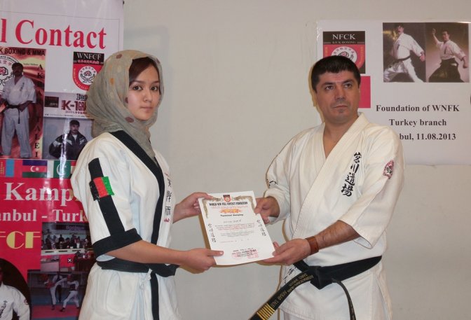 درختم این سیمنار از افغانستان آقای محمد رضا بصیر موفقانه توانیست بعد از امتحان و نمایش رزمی مدرک کمربند سیایی جهانی دان دوم را از طرف معاون فدراسیون جهانی و دایرکتر عمومی نیوفول کانتاکت بدست آوردند .