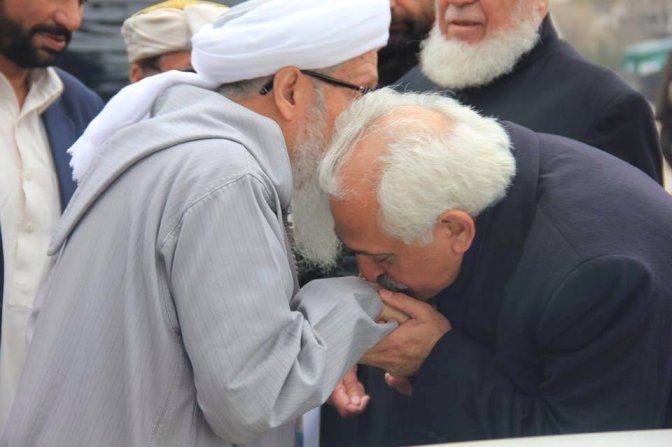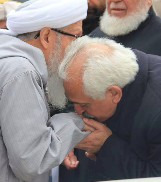 و ابوطالب،دست های خامنه ای، آدمکش قرن حاضر، را بوسیدند، برخی مثل استاد واصف باختری و پرتو نادری و .. حتا بر رکاب وزیر و استاندار و قوماندان تنظیمی، بوسه زدند، حتا به شغل شریف مشرفی« یعنی خبرچینی» روی آوردند.یکی دو عکس را عجالتا تقدیم میکنم: