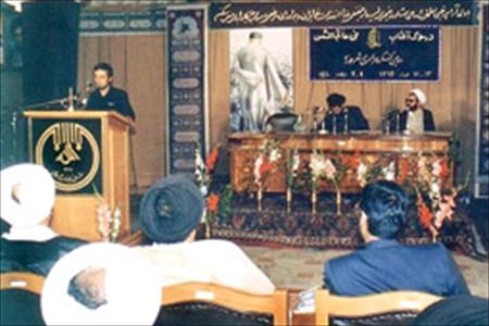 کاظم کاظمی، برای اشغال افغانستان توسط شوروی ، گریه نمیکند، اما برای ارتحال امام خمینی ، مرثیه های سوزناک سروده است، تصویر از سال ۱۳۶۹ خورشیدی است مصادف با وفات خمینی، (عکس)، کاظمی را در حال خاندن مرثیه، نشان میدهد: