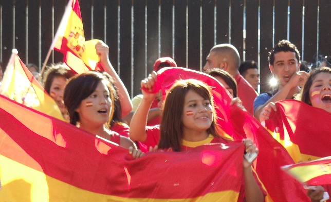 هر چند به فوتبال علاقه ی شدید ندارم اما شادمانی و پای کوبی طرفداران تیم اسپانیا که اکثرا اسپانیایی ها بودند مرا واداشت تا دقایقی را از موتر پیاده شوم و با لینز دوربین عکاسی شریک شادیهای شان باشم و این هم تصاویر از این جشن و پاکوبی .