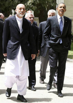 اوباما در کنار رييس جمهور افغانستان حامد کرزی