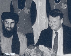 • به اين تصوير مسلمان ومجاهد واقعي نگاه كنيد كه در پهلوي رئيس استخبارات آمريكا دهنش باز مانده