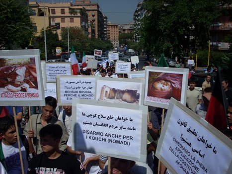 دراعتراض به تجاوز مسلحانه کوچی هابه بهسود وپشتیبانی دولت ازاین تجاوز وخشونت وبی تفاوتی جامعه جهانی نسبت به این فاجعه صدها نفرازمهاجرین ودانشجویان افغانی مقیم ایتالیا با تشکیل کمیته زیرنام"کمیته ضدکوچیگریی وکوچ دهی اجباری درافغانستان" درشهرروم پایتخت این کشور به صورت مسالمت آمیز تظاهرات نمودند.
