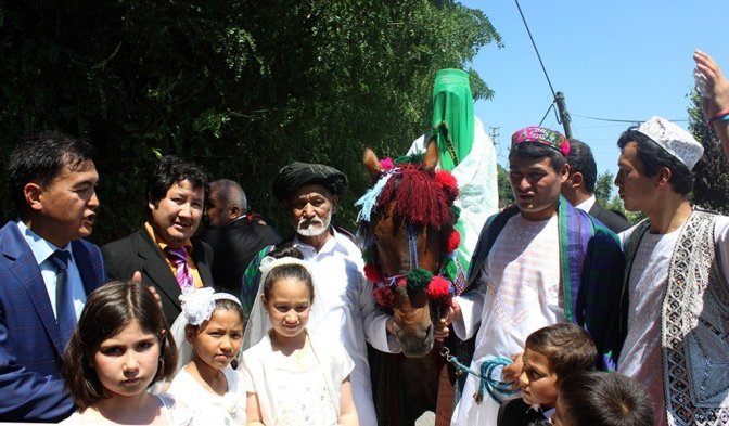 ابتدا عروس و داماد با فرهنگ هزاره، در حالی که رقص و خواندن هزاره گی آنان را دنبال می کرد وارد شدند و مراسم عروسی آغاز شد. عروس سوار بر اسبی بود و داماد او را همراهی می کرد.