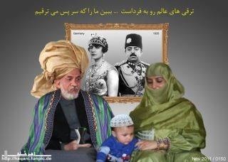 جناب اشرف غنی ، به کدام جرات با این لباس حقارتبار محلی، در دفترو محافل رسمی ظاهر میشود، در حالیکه هم خودش و هم همتبارانش، هر روز، بر سر چار راه ها، در مسجد و میکده، سنگ دوستی و پیروی از امیر امان الله را به سینه میزنند و هرکس، امان الله را غازی و محصل استقلال و ریفورمیست شرق، نخواند ، از سوی این چماقداران ، تکفیر و تهدید میشود