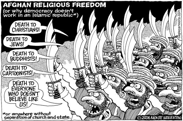 In Islam, the domain of beliefs is so widespread that it covers everything from God and the prophet to Ali Khamenei prostate and Mullah Omar’s blind eye. It goes without saying that under such circumstances, simple matters like making a movie, drawing a cartoon, taking a picture, listening to music and many otherwise normal acts are now considered an insult to religion. It shouldn’t be like that.