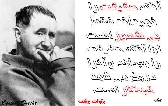 نوشتۀ برتولت برشت در حقیقت بر خودت مصداق کامل دارد. زیرا حقیقت را نمی دانی اگر میدانی هم کتمان می کنی. کشوری به نام " ایران " در سال 1935 میلادی عرض اندام کرد و هر انکه پیش از این تاریخ صحبت از " ایران " می کند به نادانی و جهالت خود صحه می گذارد. سخی