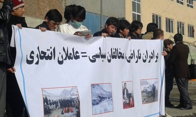 پس از جنایت و فاجعه،؛ مردم به جادهها ریختند. از دولت امنیت خواستند اما دولتمرد تروریستان طالب را «برادر ناراضی» خطاب کرد. دولت به خواست مردم اعتنا نکرد. به مردم اهمیت نداد. در سال جاری بازار انتخابات داغ بود. اشرف غنی به جاغوری سفر کرد. مردم خوشحال بود که شاید «تحول»ی در زندگی شان رخ دهد. مردِ به جاغوری رفت که قرار بود افغانستان را متحول کند. در جاغوری گفت: «در دوران تحصیل و بعد از آن، آرزویم این بود که یک روزی به جاغوری بروم و معلمی کنم».