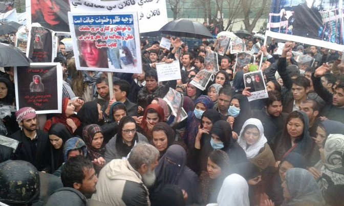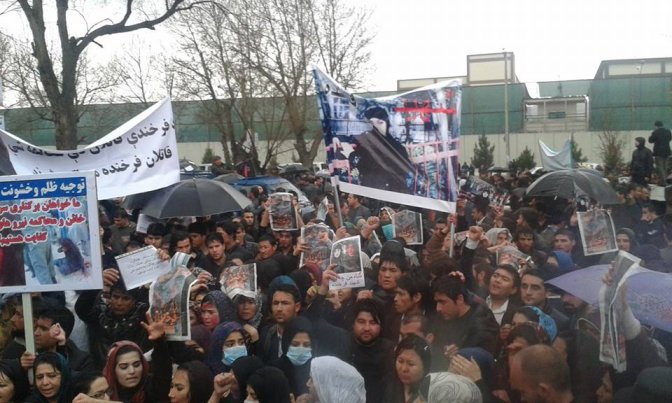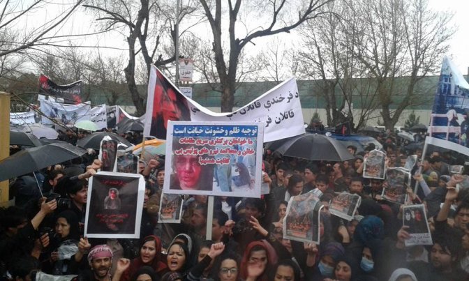 امروز سه شنبه 24 ماه مارچ 2015، هزاران تن از شهروندان کابل بويژه زنان، با برپایی راهپیمایی وسیع در دفاع از انسانیت، خواستار برقراری عدالت و محاکمه ی عاملان قتل فرخنده شدند.
