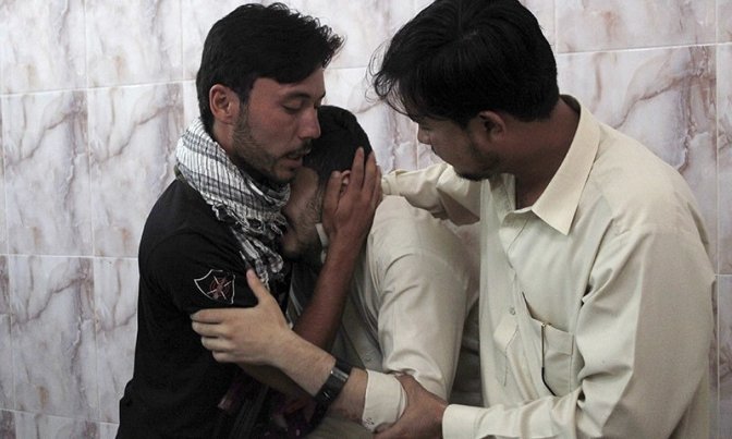 Men mourn the death of a relative, who was killed with two others by unidentified gunmen on July 6. A policemen and two others were killed when unidentified assailants opened fire on them near the passport office at Join Road in Quetta on Monday, according to the police. –Reuters.