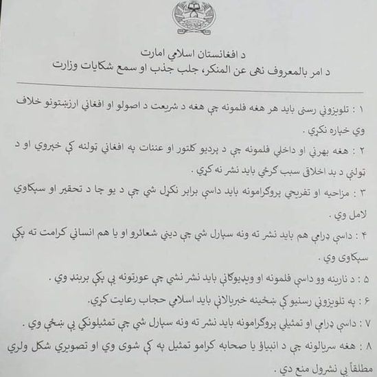 در این تصویر یک دستورنامه سانسور به زبان پشتو آمده که برای بیش از هشتاد درصد از باشندگان این سرزمین بیگانه می باشد. این زبانی است که چند دهه حلقات نژآدپرست تلاش کرده اند به عنوان زبان ملی به اکثریت این مردم تحمیل کنند اما تاکنون موفق نشده اند.