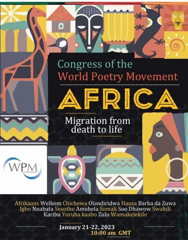 We, the Poets in Africa, gathered in a Virtual Congress Meeting from 21 to 22 January 2023 under the banner of the World Poetry Movement (WPM). The Congress was attended by Poets from several African counties, representatives of Governments of the Bolivarian Republic of Venezuela and the Republic of Colombia, and graced by the attendance of Poets from other Continents; Asia, Europe, Latin America, et al. Under the leadership of the WPM Coordinator and founder Comrade Fernando Rendon, the Congress was officiated.