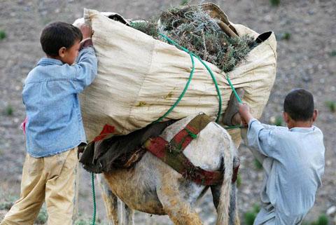 پسران درحال بارکردن هيزم در ولايت باميان/ عکس از علی اصغر صفدر