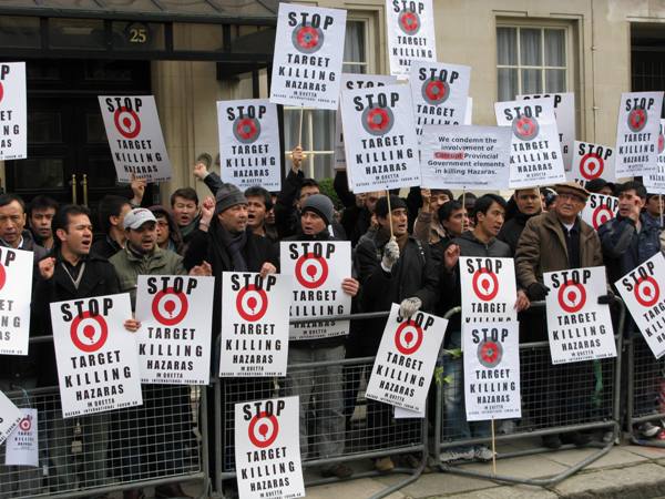 صدها تن از هزاره های مقیم انگلستان، با پرپایی يک تظاهرات مقابل سفارت پاکستان در لندن، اعتراض خود را نسبت به کشتار و قتل های زنجيره ای هزاره ها در شهر کویته ی پاکستان اعلام کرده و خواستار توقف آن و تامين امنيت شدند.