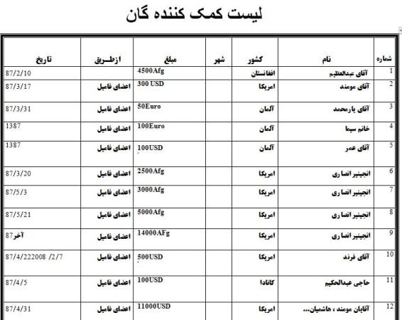 برای شفافیت ومطمئن شدن هموطنان، مقدار کمکهای مالی را در ویب سایت منتشر میکنیم .اگر هموطنان نمیخواهند که نام شان منتشر شود البته ما منتشر نمیکنم.