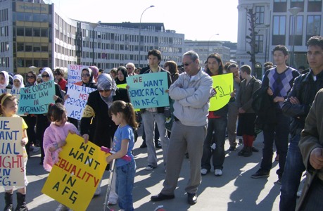 عکس هایی از اجتماع افغانستانی های مقيم نروژ در اعتراض به قانون طالبانی احوال شخصیه/ همراه با قطعنامه ی اين اجتماع