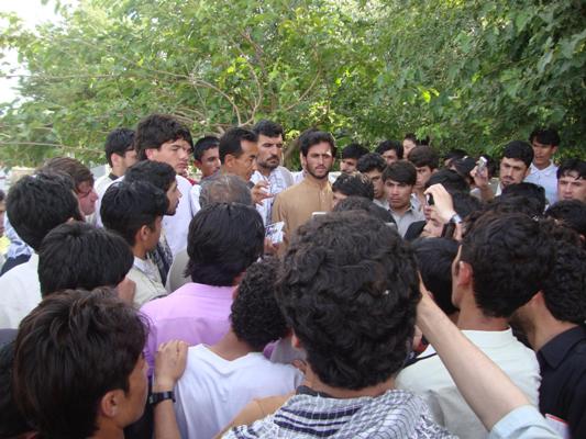 استقبال اهالی پروان از کمپاین مثل سایر ولایات عالی بود. از بازار بین مردم کمپاین را شروع کردم بعد ملاقات اعلان نشده با محصلین انستیتوت تعلیم و تربیه خارج از محوطه انستیتوت داشتم چون در داخل ادارات رسمی قانون اجازه نمیدهند.