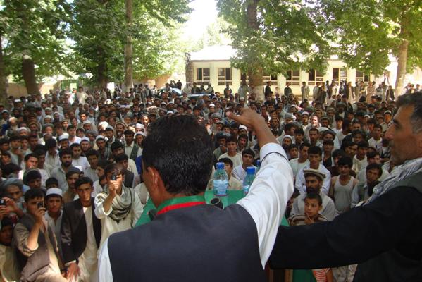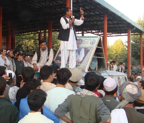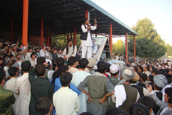 وقتی وارد تالقان شدم، خیمه کمپاین را در پارک شاروالی نصب کردم. بعد از رادیو های محلی ای خانم و تخارستان دیدن کردم بعدآ کمپاین را به بازار تالقان منتقل کردم. روز چهارشنبه رابا سخنرانی در پارک شاروالی به پایان رساندم. در مدتی بسیار کوتا جمعی کثیری که از آمدن من یک ساعت قبل خبر شده بودند درپارک جمع شده بودند.