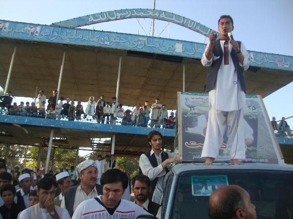 اوتنها کسی است که... با چنین اوصافی شایسته استکه مردم اورا قهرمان خود بداند وطالب حتی به او آسیب نرساند ودر استقبالش گوسفندی ذبح کند ( خواه ازسر علاقه وخواه ازترس افکار عمومی)چنین به نظر می آید که مردم افغانستان دیگر فریب شعارها را نخواهد خورد و به کسی اقبال خواهد کرد که مردعمل باشد .اگرچه در سخن لغزشهای هم داشته باشد.چرا که آنا به این شعر ایمان پیدا کرده اند که به عمل کاربرآید به سخندانی نیست بشردوست آغاز این راه است هرکس میتواند با او رقابت کند و یا یاری اش کند بسم الله.