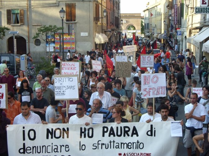 صبح امروز صد ها هزار شهروند خارجی وایتالیایی درشهرهای مختلف ایتالیا درخیابانها ریختند وعلیه تصمیم دولت درمورد فسخ قوانین مهاجرت، اعتراض نمودند. تصمیم منحصر به فرد در اروپا، به دلیل داشتن(xenofobo)یاترس ازبیگانه ها. اگر قانون جدید درایتالیا به اجرا گذاشته شود، پیوستن به جامعه این کشور خیلی دشوار خواهد بود. زیرا این قانون خارجی هارا به قشرهای متفاوت اجتماعی تقسیم میکند.