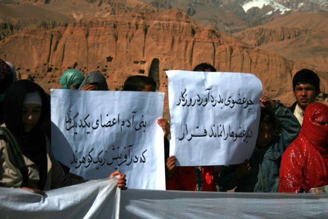 امروز عده ای ازجوانان بامیان به خاطراظهارهمدردی با آسیب دیدگان حادثه زلزله و سونامی اخیرجاپان که منجربه کشته شدن هزاران نفرگردیده است، بر فرازتپه چونی بامیان تجمع کردند.