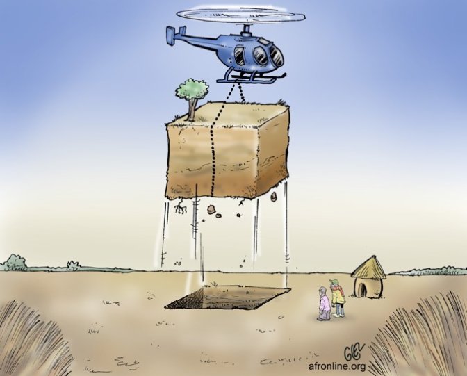 مانند روستای لونگی، اهالی معمولا بابت از دست دادن زمین و آب مابه ازاء آنرا دریافت نمی کنند. مابه ازائی که به آنها داده می شود بسیار ناچیز بوده و یا اصلا چیزی به دستشان نمی رسد. بخش اصلی حق اجاره یا بهای فروش املاک را دولت ها، مسئولان محلی و یا کدخدا های روستاها به جیب زده و غالبا به روستائیان که معمولا فاقد سند و مدرک مالکیت اراضی می باشند، چیزی نمی رسد. علاوه بر آن تجربه نشان داده است که مزارع کلان کشت نیشکر، زویا و یا باغات دانه های روغنی که مالکان جدید ایجاد می کنند، بسیار اندک برای اهالی اشتغال ساز می باشند. میزان مزدهائی هم که می دهند پائین و شرایط کار اسف انگیز است. آنگاه اگر اهالی رانده شده از اراضی مزبور قصد کوچ کردن به سایر جاها را داشته باشند، سرنوشتشان مانند داستان خارپشت و خرکوش است: زیرا اکثرا زمینخوران جدید پیش از آنها به آن مکان ها نیز پا نهاده اند.