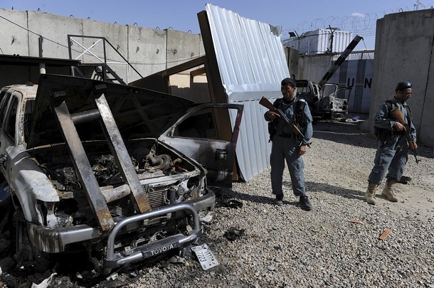 روز جمعه اول اپریل 2011، عده ای در جریان تظاهرات خشونت آمیز، به دفتر نمایندگی یوناما، چهارده تن را به قتل می رسانند. دو تن از آنان نیز سر بریده شدند. در شهر قندهار نیز، تظاهرات مشابهی روی داد که بیش از ده تن در آنجا نیز کشته شدند. اين خشونت ها در اعتراض به آتش زدن قرآن توسط يک کشیش آمریکایی روی داده است. بسیاری از شهروندان افغانستان ضمن محکوم کردن اقدام کشیش آمریکایی، خشونت ها در افغانستان را شرم آور می دانند. در همین حال اينگونه خشونت ها، تصویر منفی افکار عمومی جهان از افغانستان را تشدید کرده است.