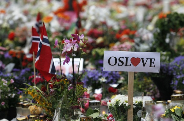 صدها هزار نروژی امروز در نقاط مختلف گرد هم آمدند و یاد ده ها تن کشته شده در روز 22 جولای را گرامی داشتند. آن ها در حالی که گل های رز در دست داشتند، آمده بودند تا بگویند دموکراسی آری، عشق آری، راسیسم نه. ینس استولتنبرگ صدر اعظم نروژ در جمع مردم گفت که نروژ از 22 جولای به بعد تلاش خاص و بیشتری برای دموکراسی خواهد کرد. شاهزاده و ولیعهد نروژ گفت که امروز خیابان های نروژ از عشق پر است. او از مردم خواست تا گل های رز را در تمام خیابان های اسلو پخش کنند. يکی دیگر از مقامات گفت که ما اینجاییم تا به نژآدپرستی نه بگوییم. دوکراسی آری نژآدپرستی و راسیسم نه. يک نویسنده ی نروژی روی دیوار فیس بوک خود نوشته که ما مردم نروژ به خیابان ها می رویم تا نشان دهیم ما همه برای حمایت از آنچه تروریست نروژی علیه آن است آماده هستیم.