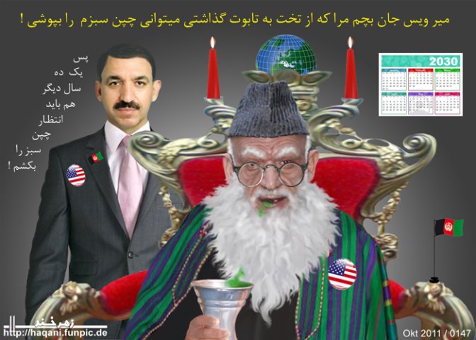 وصــیت محــترم حــامــد کــرزی به فــرزند دلبــندش مــیرویس جــان در بابت حفــظ چــپن و تخــت و تاج !