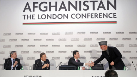 بلاخره تصویب طرح مذاکره با طالبان در 8 دلو 1388 در کنفرانس لندن که از جانب هیئت حکومتی افغانستان پشنهاد گردیده بود، زمینه رشد، گسترش، فعالیت وخشونت بیشتر را برای گروه طالبان فراهم نمود. مشارکت اقوام در ترکیب هئیت افغانستانی درنشست لندن کاملا نادیده گرفته شده و تصویب طرح مصالحه با طالبان همراه با مخالفت های گسترده ی نهادها و شخصیت های غیر پشتونی درسراسر جهان مواجه شد از سوی دیگر و درحالیکه قطعنامه شورای امنیت سازمان ملل متحد نابودی طالبان و مشارکت اقوام را در اداره کشور الزامی نموده است. بنابر درخواست رئیس جمهور افغانستان نام شماری از رهبران طالبان از لست سیاه سازمان ملل متحد حذف و برخی آنان از گوانتانامو آزاد و درکابل مستقر شدند. چنانکه شامگاه جمعه 24 سرطان 1389 اطلاعیۀ از سوی پیتر ویتیگ نماینده دائم آلمان و رئیس دورۀ شورای امنیت منتشر گردید که طبق آن نام چهارده تن از رهبران طالبان به درخواست دولت افغانستان از فهرست سیاه حذف که نامهای ارسلا رحمانی معاون پیشین وزارت تحصیلات عالی و سید رحمان حقانی معاون وزارت معادن و صنایع در رژیم پیشین طالبان، حفیظالله فوزی دیپلمات طالبان درعربستان و فقیر محمد در میان چهارده تن از رهبران طالبان قرار داشته است.
