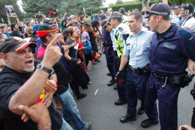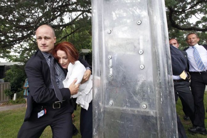 امروز عصر به وقت استرالیا، جولیا گیلارد صدراعظم استرالیا و تونی ابوت رهبر حزب لیبرال در پی خشم فعالان حقوق اقلیت ها، از کانبرا پا به فرار گذاشت. فعالان او را راسیست و نژادپرست می خوانند که دولت وی حقوق بومیان را نادیده می گیرد. مدافعان بومیان استرالیا در شعارهایشان می گفتند گیلارد را تا بندر یا میدان هوایی اسکورت کرده و او را به ولز برگردانید. منظور این فعالان این است که گیلارد خود مهاجری ست که از غرب اروپا به استرالیا آمده و با سیاست های راسیستی خود حقوق بومیان را نادیده می گیرد.