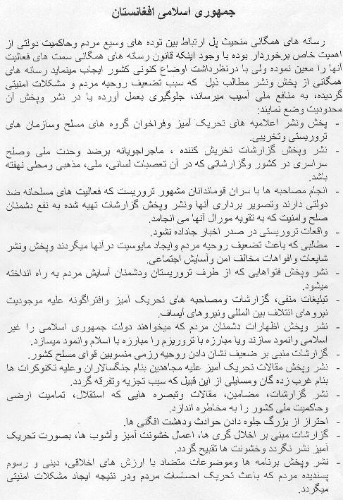 سانسور نامه دولت افغانستان
